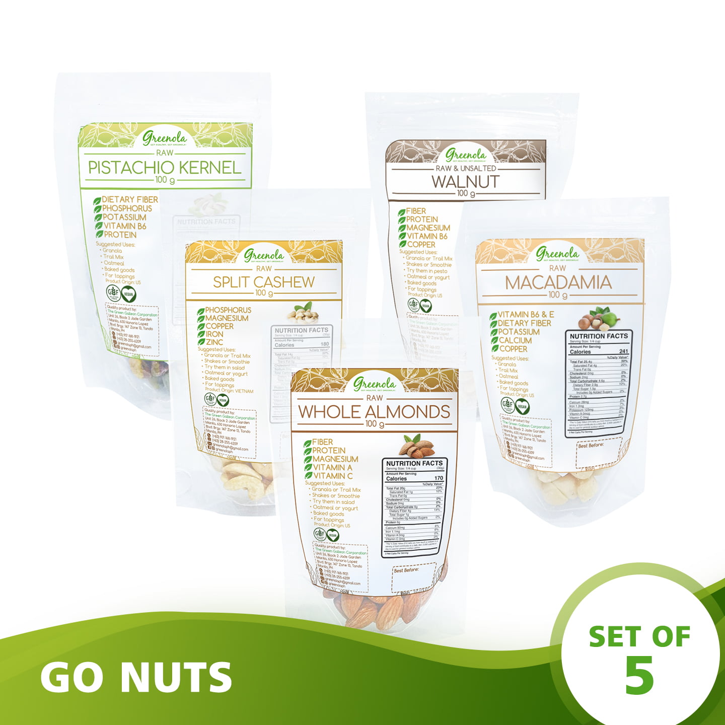 Our raw almonds are of the unparalleled premium California variety. It can be eaten as a healthy, satiating snack or can be used to make heavenly almond milk, vegan flours, or add a hearty twist to your favorite desserts and savory dishes. - Greenola Cashew (Raw, Split)